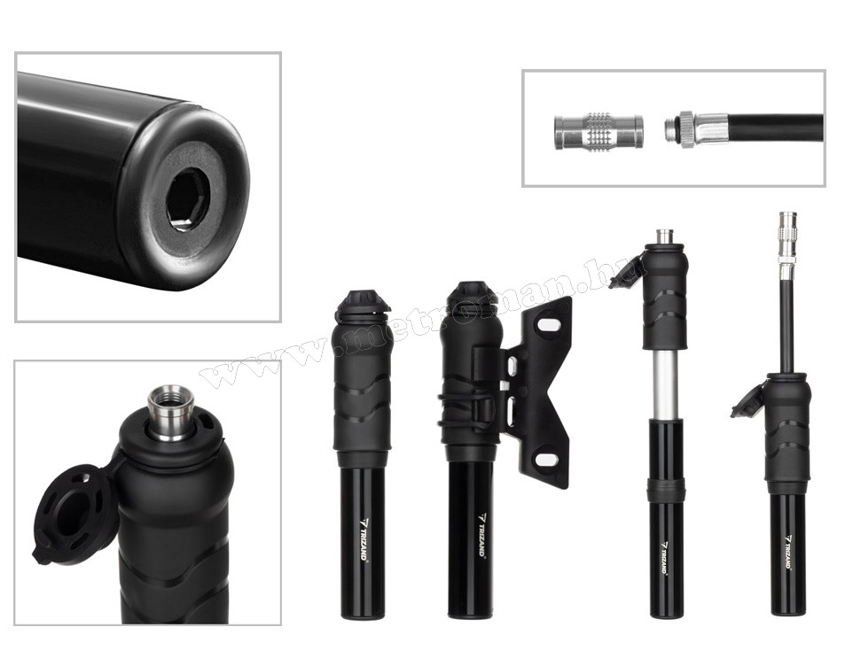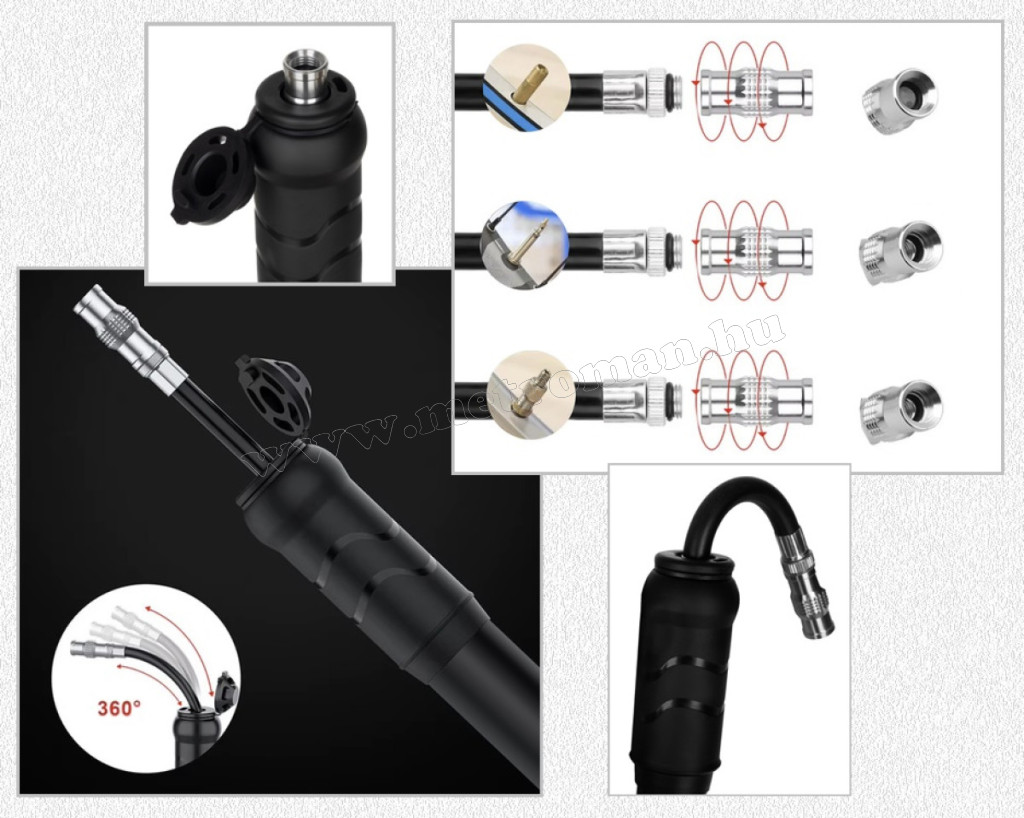 Univerzális  - a kompakt méretű kerékpárpumpa univerzális szeleppel rendelkezik, amely kompatibilis a Presta és Schrader szelepekkel, így könnyen felszerelhető a legtöbb kerékpárra és robogóra
