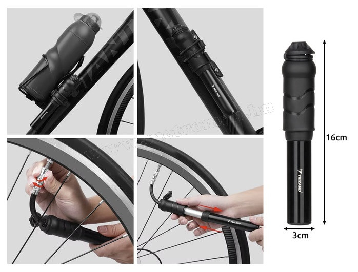 Kompakt és ultrakönnyű  - a mini kerékpárpumpa mindössze 16 cm hosszú és mindössze 100 grammot nyom, ami azt jelenti, hogy meg sem fogod érezni - sem hátizsákban, sem a kerékpár vázán