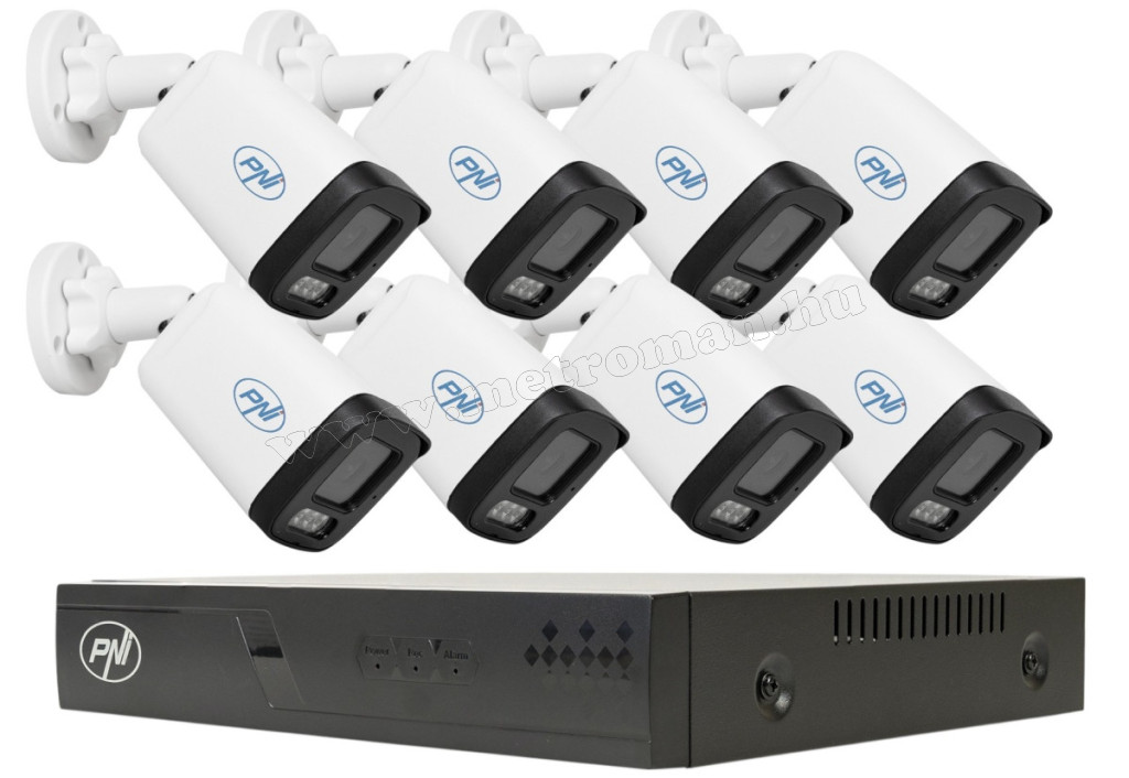 Nagy felbontású 8 kamerás biztonsági IP megfigyelő kamera rendszer PNI IP716J+8XIP515J POE