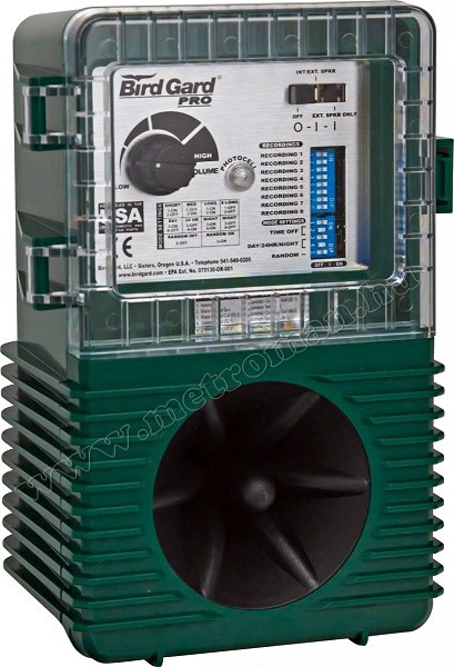 A Bird Gard Pro elektromos akusztikus madárriasztó készülék. A készülék segítségével hatékonyan elriaszthatja környezetéből a nemkívánatos galambokat, seregélyeket, és más madarakat. A készüléket alkalmazhatja gazdaságokban, ipari területen, raktárakban, áruházak területén és kikötőkben hajók, csónakok, jachtok védelméül.