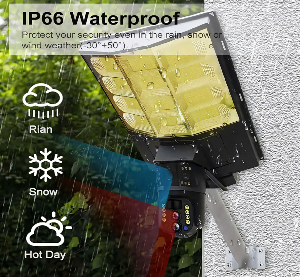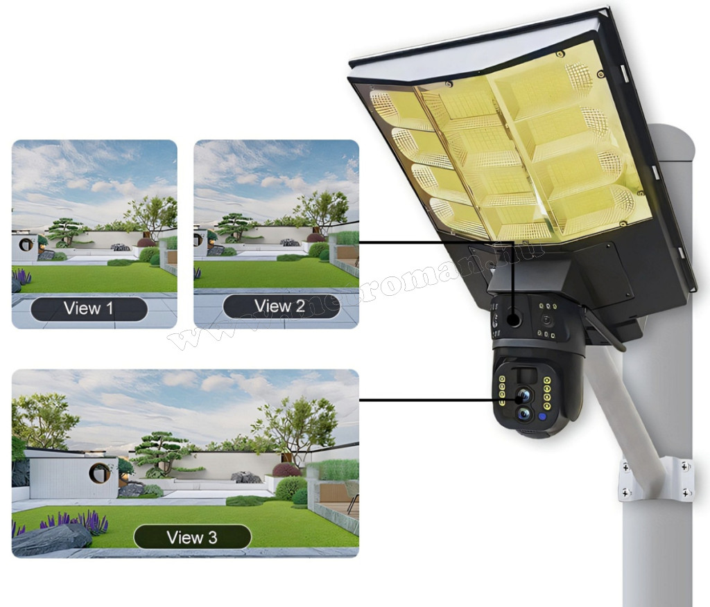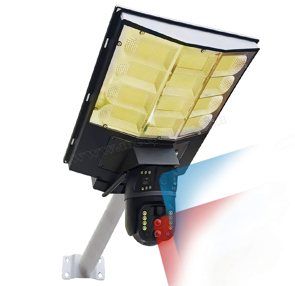 Napelemes 4G IP kamera, mobilnetes SIM kártyás kültéri biztonsági kamera Kültéri LED lámpa M0201-4G-PTZ-LED DualCam V380PRO