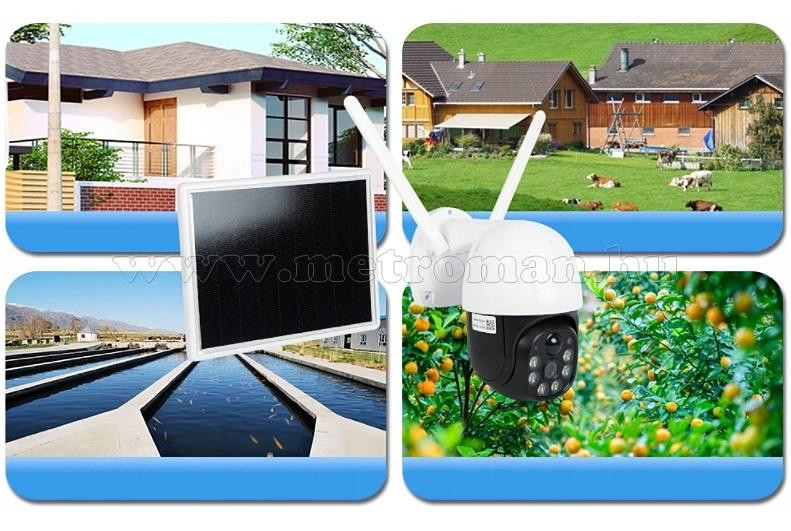 Napelemes tápellátásának köszönhetően rendkívül egyszerűen és gyorsan telepíthető, szinte bárhol használható így praktikus biztonsági megfigyelő kamera erdők, termőföldek, legelők, méhészetek, vízi járművek, építési területek és munkagépek megfigyelésére.