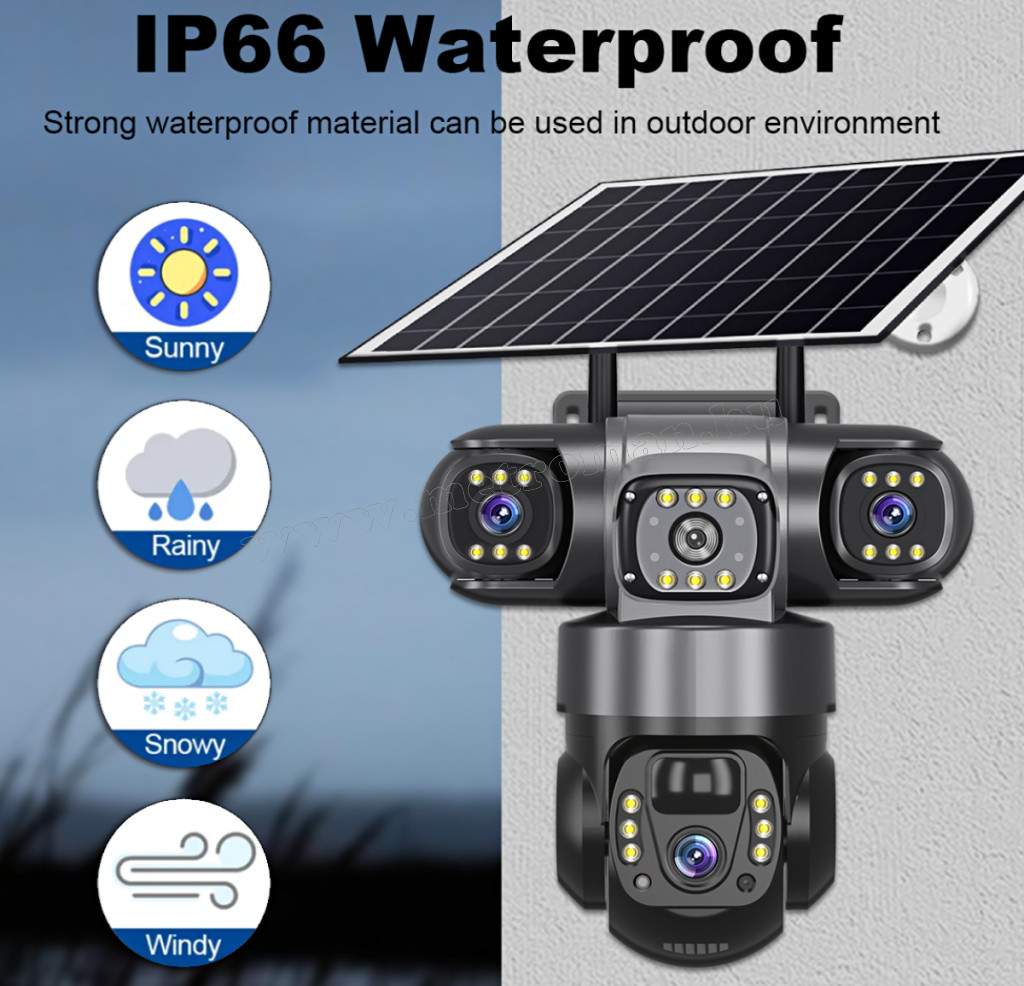 TriCam három kamerás Kültéri Napelemes 4G mobilinternet SIM kártyával használható, pár perc alatt egyszerűen telepíthető, vezeték nélküli IP biztonsági megfigyelő kamera, olyan helyekre is, ahol nincs Wifi. Telepítse az iPhone vagy Android V380PRO APP-ot telefonjára és néhány beállítás után nézze élőben vagy játssza vissza az SD kártyára rögzített felvételeket bárhonnan okostelefonjáról vagy számítógépről. Kitűnő választás erdők, termőföldek, méhészetek és illegális szemétlerakók megfigyelésére is.