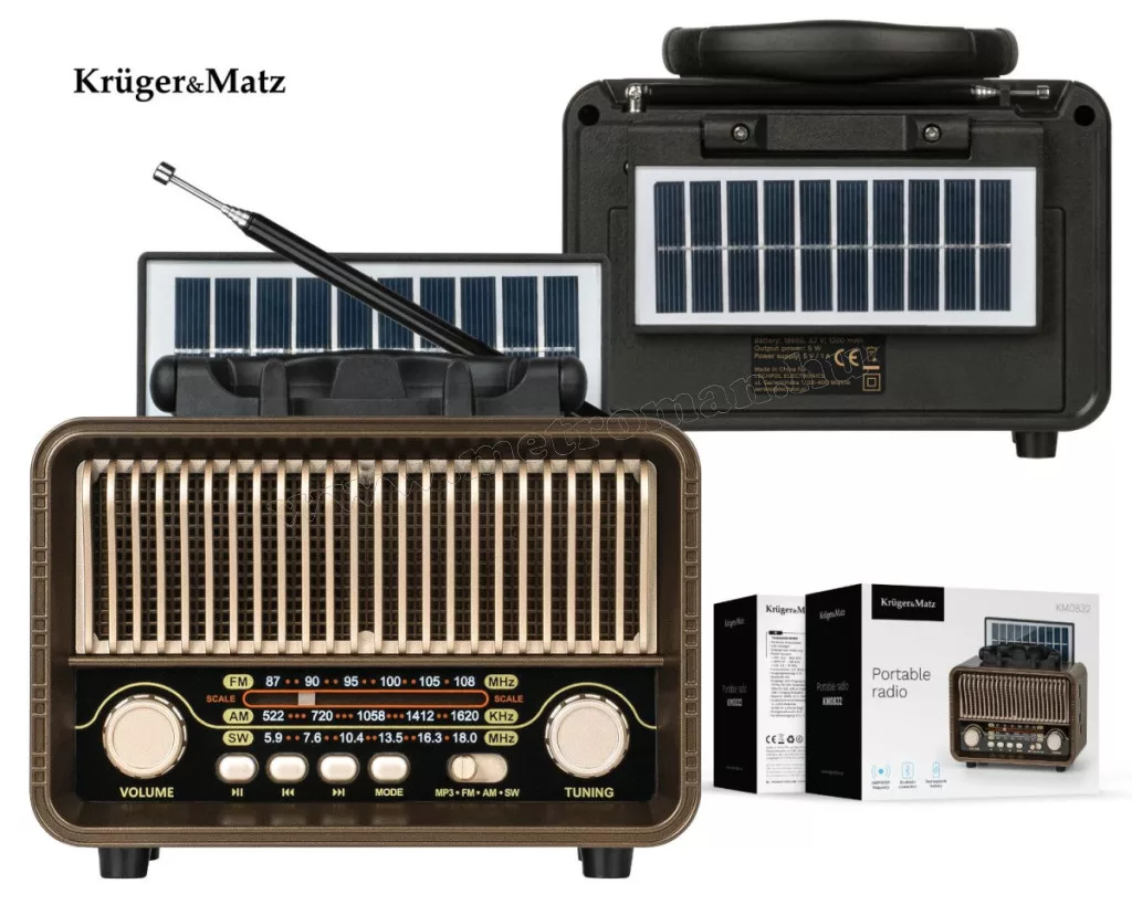 A Kruger&Matz napelemes rádió megbízható információ- és szórakoztatóforrás, amelyet utazók, kempingezők és szabadtéri rajongók számára terveztek. A klasszikus rádióvevőt modern technológiával ötvözi, így áramszünetben is hozzáférést biztosít zenéhez, hírekhez és kommunikációhoz. Tökéletes kirándulásokhoz, kempingezéshez és vészhelyzetekhez.