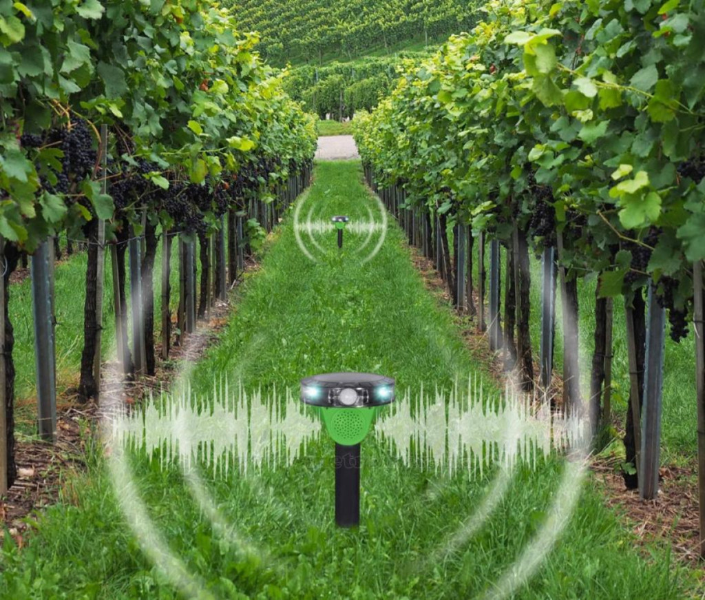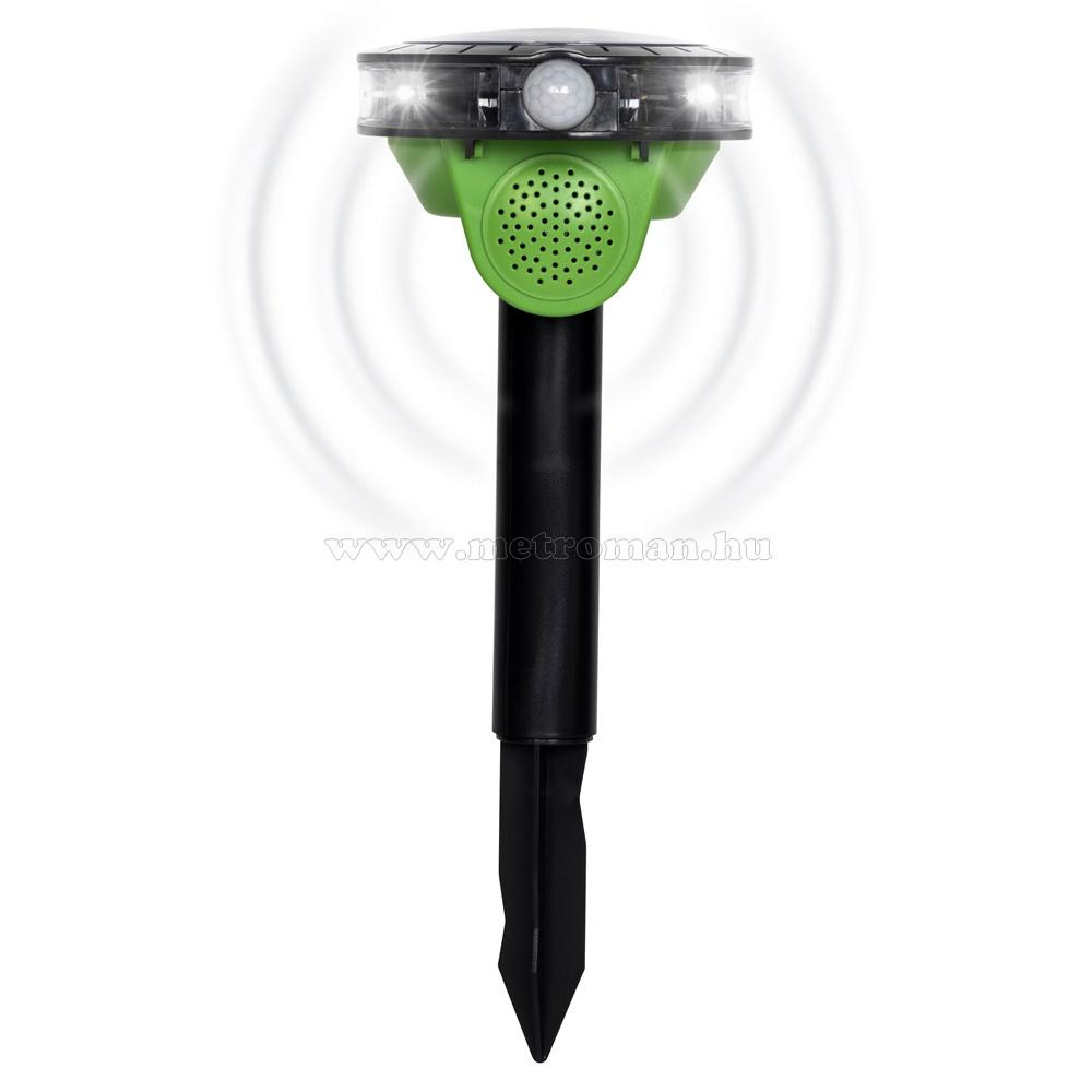 Elektromos, erős hallható hangot kibocsátó napelemes és mozgásérzékelős madárriasztó.