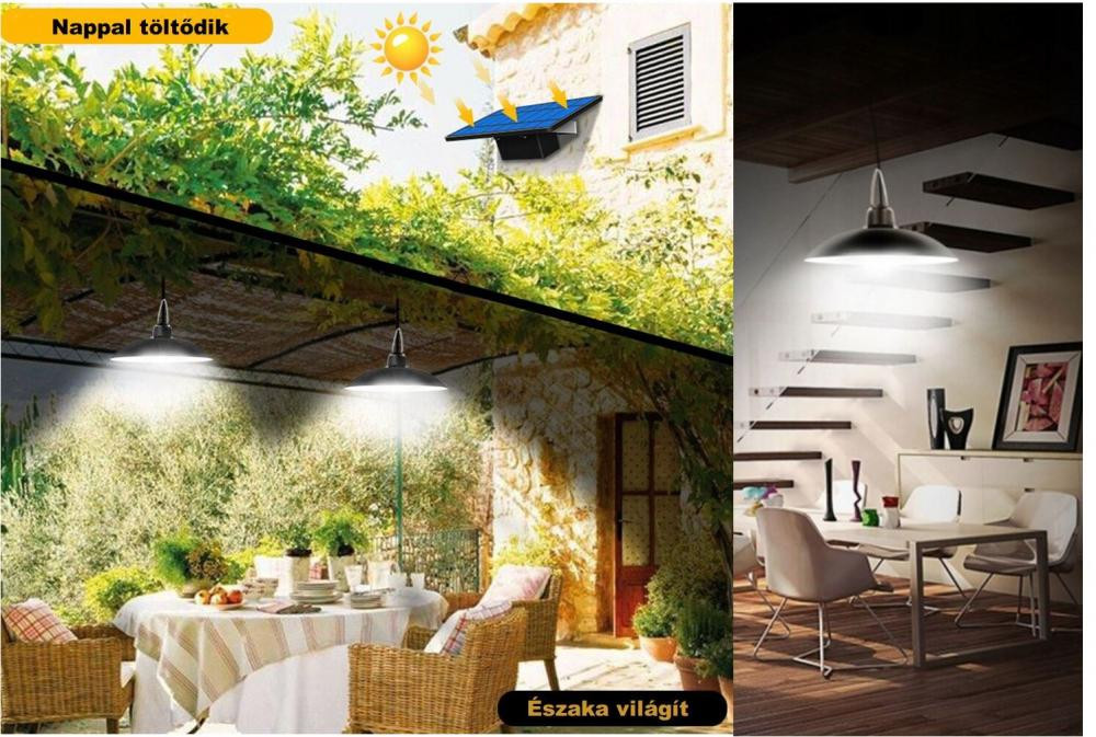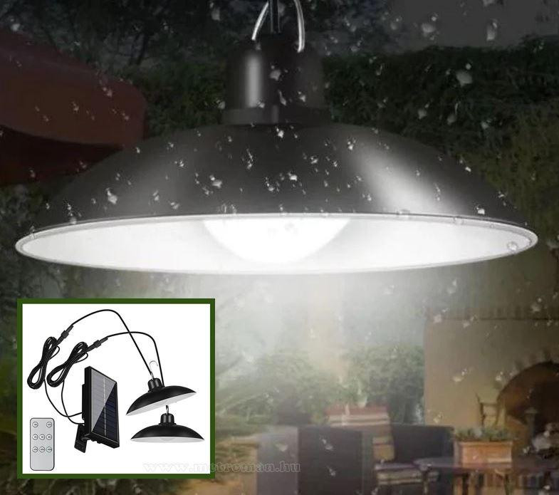 Napelemes függő kemping LED lámpa készlet 2 db lámpával, mely alkalmas kertek, teraszok megvilágítására, horgászathoz, kempingezéshez, sátorba.