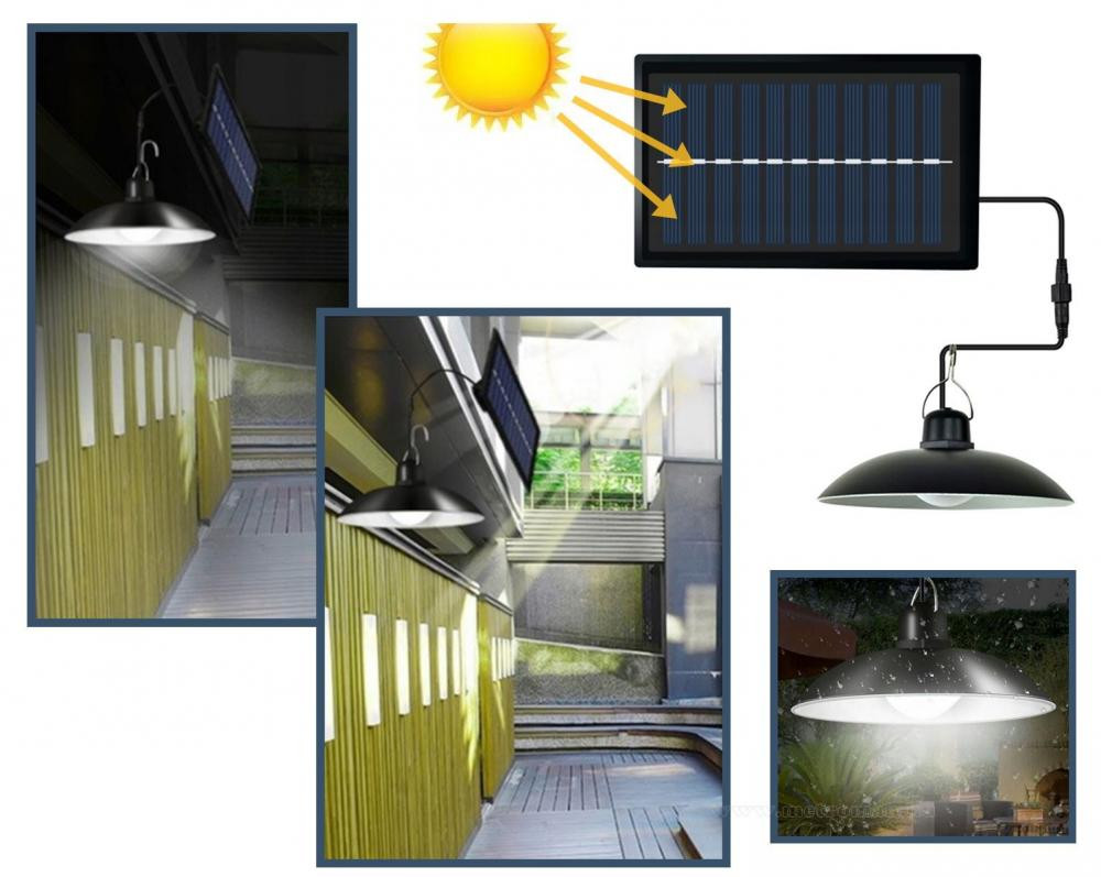 Napelemes függő kemping LED lámpa, mely alkalmas kertek, teraszok megvilágítására, horgászathoz, kempingezéshez, sátorba.