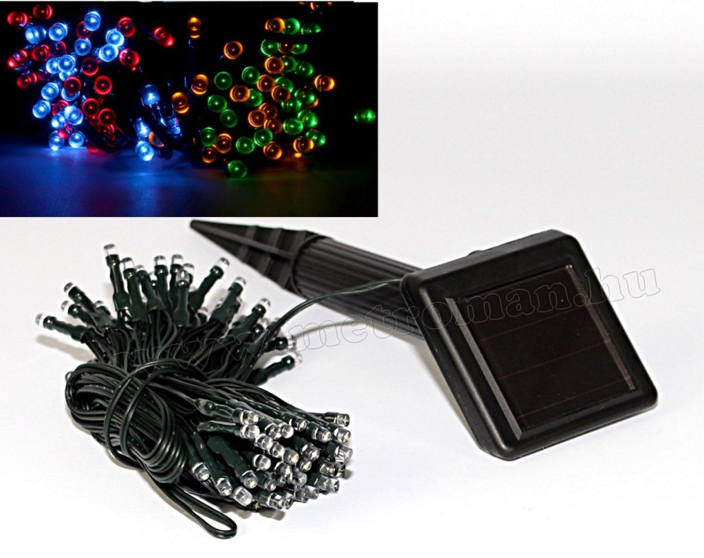 Napelemes kültéri fényfüzér, Kerti LED fényfüzér M7615/100M Színes