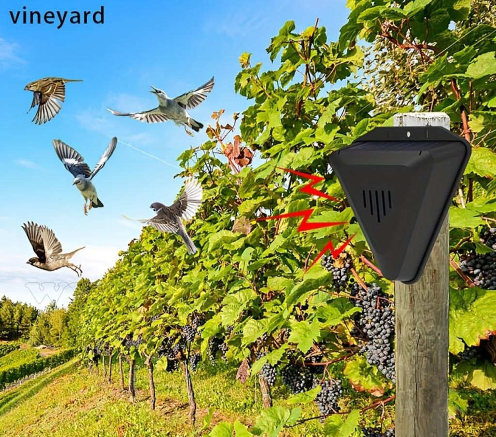 3 perces időközönként riaszt és váltakozó 13 különféle hangot ad ki, mint sebzett vad és madár hangja, ragadozó madár hang, puskalövés, kutyaugatás stb. mellyel hatásosan riaszthatja el a szőlőnket vagy gyümölcseinket dézsmáló madarakat.