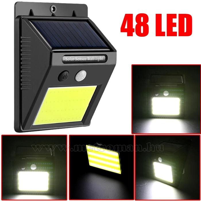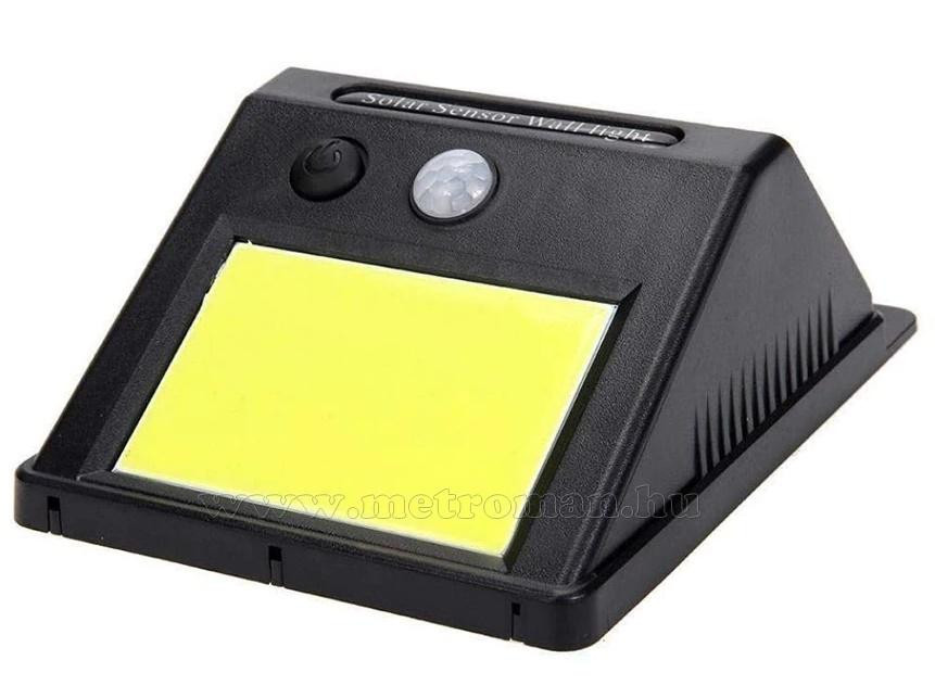 Egyszerűen falra szerelhető napelemes LED lámpa, nagy fényerejű COB LED-ekkel, mely sötétben mozgás esetén automatikusan bekapcsol