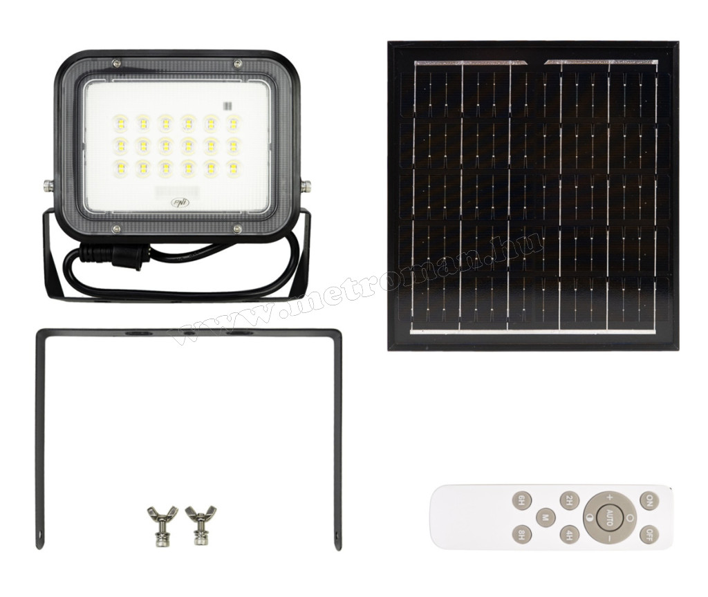 A reflektorhoz tartozik egy távirányító, amellyel a fő funkciók távvezérelhetők: be/ki kapcsolás, a fényerősség beállítása és időzítő beállítása automatikus működéshez (2 óra, 4 óra, 6 óra, 8 óra), ami rugalmasságot és energiamegtakarítást kínál. A reflektorház IP65-ös védelmi besorolással rendelkezik, por- és időjárásálló, így az évszaktól függetlenül különféle környezeti feltételek mellett is működhet.