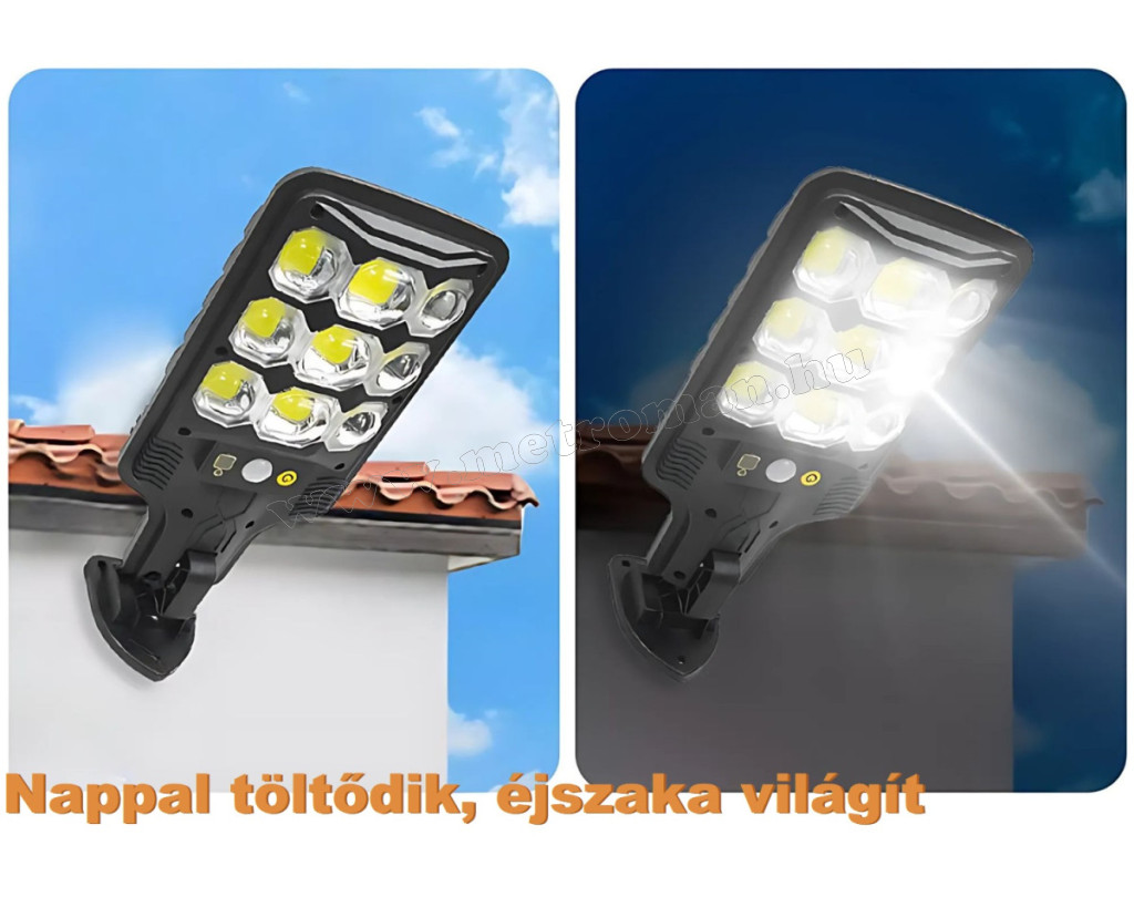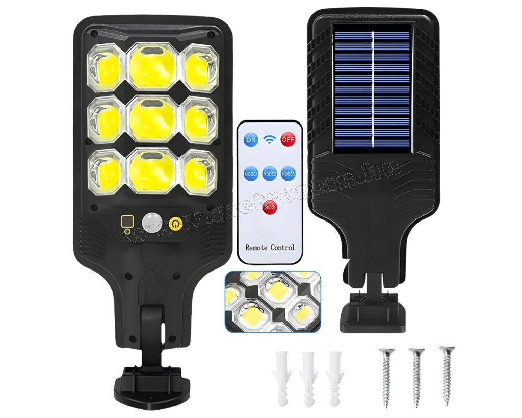 Szeretné biztonságosabbá és hangulatosabbá tenni kertjét anélkül, hogy villanyszámlája megemelkedne? Napelemes LED lámpánk a tökéletes megoldás! Használja ki a nap energiáját, és élvezze az ingyenes, környezetbarát világítást. Ez a COB LED napelemes lámpa egy praktikus és energiatakarékos kültéri világítási megoldás – tökéletesen megvilágítja a kertet, kocsifelhajtót, teraszrat, erkélyt, garázst vagy kaput. Napelemes tápellátásának és mozgásérzékelőjének köszönhetően, automatikusan bekapcsol, amikor aktivitást észlel, így biztosítva a biztonságot és a kényelmet. Az akkumulátor napfényben töltődik, este pedig a lámpa automatikusan bekapcsol. A  távirányító segítségével a lámpa távolról is kényelmesen vezérelhető.