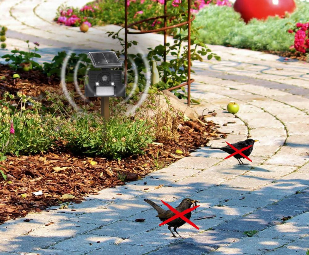Az ultrahangos madárriasztó kíméletes módon riasztja el a galambokat, seregélyeket és egyéb madarakat egy kellemetlen kibocsátott hang segítségével. Emellett egy LED-es stroboszkóp fény is aktiválódik, hogy az állatok menekülési viselkedését vizuálisan is erősítse.
