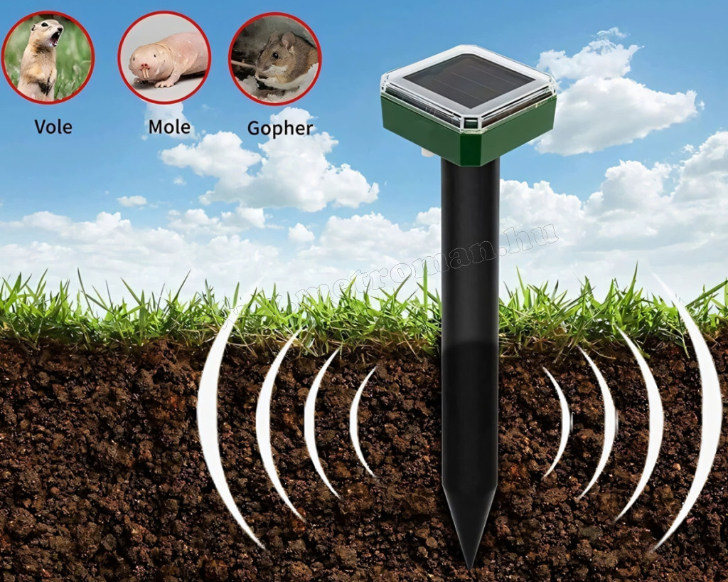 - Rezgéseivel hatékonyan riasztja a föld alatti rágcsálókat, vakondokat .