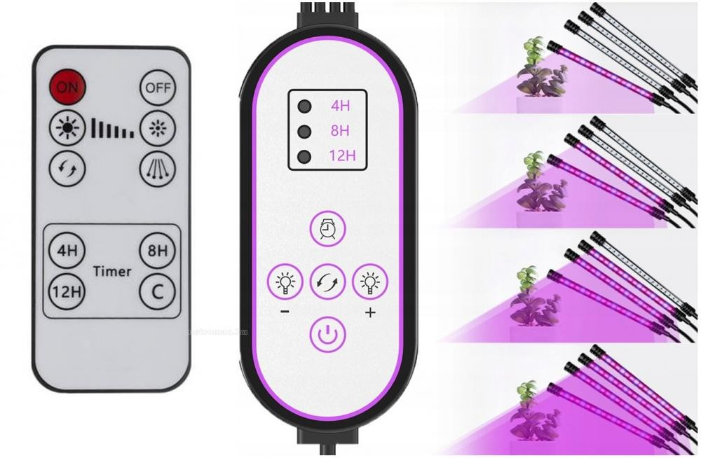A lámpa tápkábelén található egy távirányító a funkcióinak vezérléséhez. Ennek köszönhetően be- és kikapcsolhatjuk a készüléket, módosíthatjuk a világítás erősségét (+/- gomb), vagy programozhatjuk a készülék világítási idejét. Az időzítő funkció rendkívül hasznos, mert segítségével programozhatjuk a lámpa világítási idejét és ezáltal a növények megfelelő expozíciós idejét. Ezen kívül készletünkben kap egy távirányítót a lámpa távvezérléséhez.
