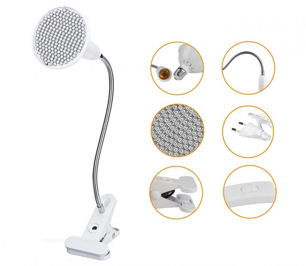 Növénynevelő lámpa piros és kék LED fénnyel. Ősszel és télen a rövidebb nappalok miatt a növények kevés fényt kapnak, így növekedésük és fejlődésük lelassul. A LED fények elősegítik a növények, fűszernövények, virágok fotoszintetizálását, így gyorsabban tudnak növekedni egész évben. Fóliáházakban, télikertekben, szobában, vagy a helyiségek sötétebb részeiben is egyaránt alkalmazható.