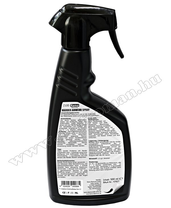 A Német Kemo cég minőségi nyestriasztó Spray terméke.