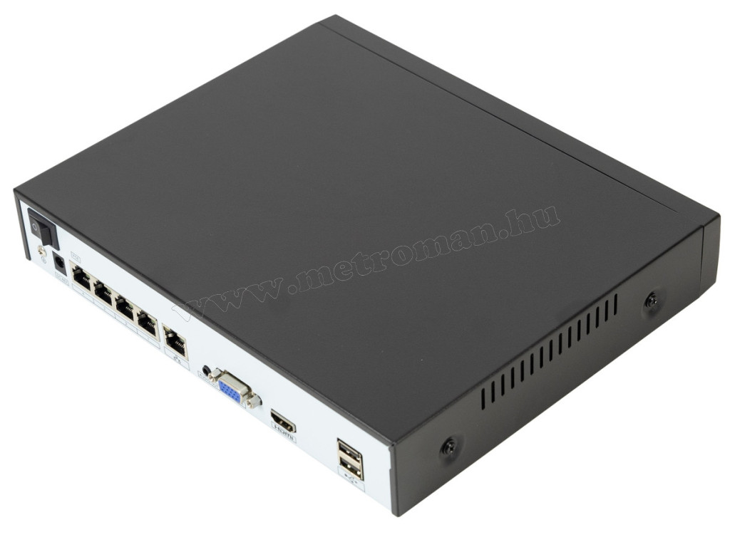 • Beépített kapcsoló és PoE portok: A 4 PoE port lehetővé teszi, hogy egyetlen kábellel (Ethernet) biztosítsa az IP kamerák tápellátását és adatátvitelt, megkönnyítve a telepítést és csökkentve a szükséges kábelezést.