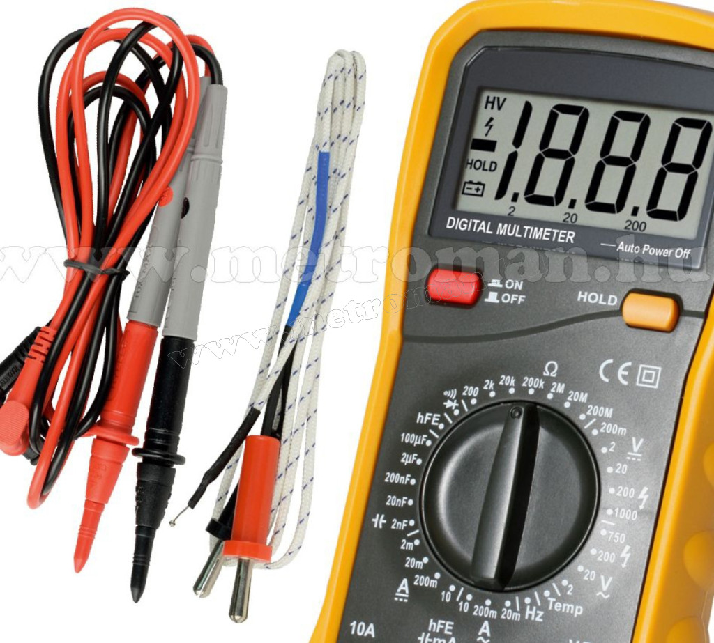 • ellenállás 200 Ohm / 2 KOhm / 20 KOhm / 200 KOhm / 2 MOhm / 20 MOhm / 200 MOhm