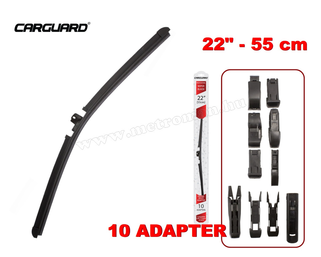 A Carguard 22" 55 cm-es ablaktörlő lapátja kiváló minőségű gumiból készült, a törlőfelület csík- és foltmentes tisztítást biztosít, így maximális kilátást nyújt vezetés közben. A beépített fémszálas rugósín egyenletes nyomást gyakorol a szélvédőre, növelve az élettartamot és a hatékonyságot. A csomag 10 adaptert tartalmaz, így a legtöbb járművel kompatibilis.
