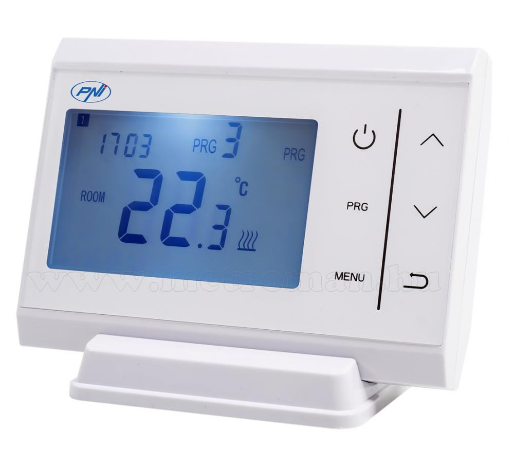 A PNI CT60 vezeték nélküli termosztáttal Ki/Be kapcsolhatjuk fűtési rendszerünket a hőmérsékletkorlát és az előre beállított időtartam alapján. A termosztátnak 3 üzemmódja van: Programozott, Kézi és Fagyőr funkciók. Programozott módban a hét minden napjára 4 különböző működési periódus állítható be
