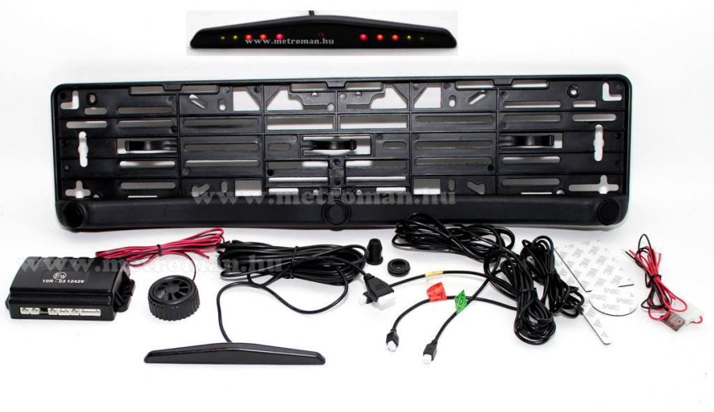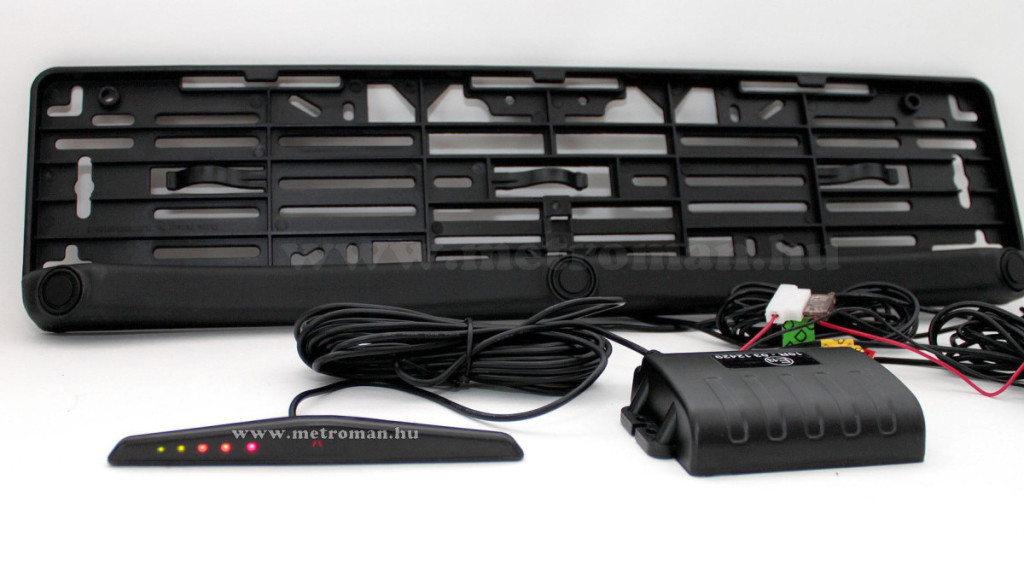 Fúrás nélkül, egyszerűen felszerelhető 3 szenzoros, rendszámtábla keretbe integrált tolatóradar kijelzővel.