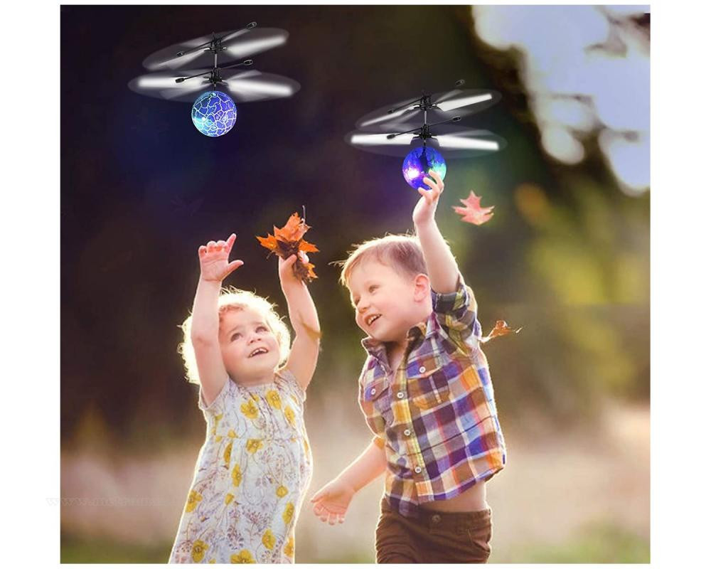 Repülő diszkógömb színes LED fényekkel és beépített magasságérzékelővel, mely remek játék minden korosztály számára. A kis gömb drónokhoz hasonlóan, propellerének segítségével lebeg, ha alá teszi a kezét felemelkedik. Elképesztő vizuális hatást biztosít, különösen sötétben dobja fel a partik vagy a játék hangulatát. Beépített akkumulátorral rendelkezik, amely körülbelül 8 perc repülést garantál minden félórás töltés után.