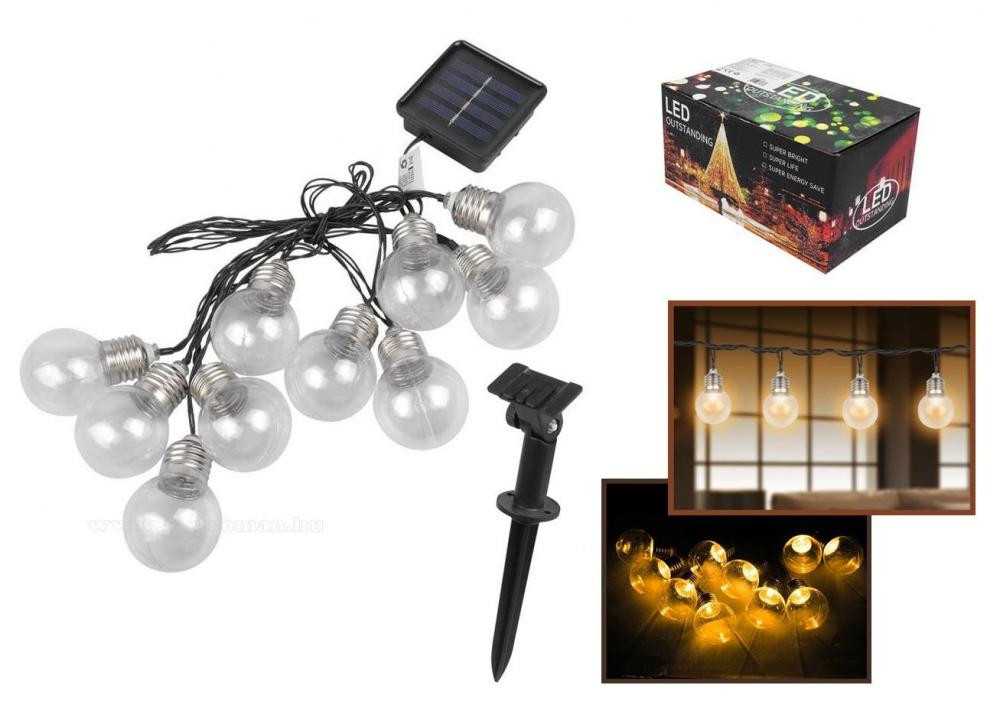 Retró gömb izzó formájú napelemes kültéri fényfüzér, kerti LED fényfüzér OGR04NEW-Solar Meleg Fehér