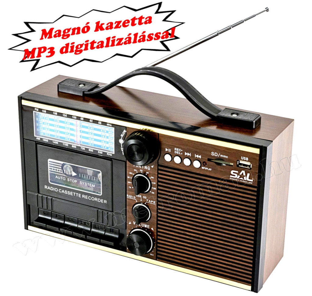 Régi idők Retro hangulatát idéző magnó kazettás táskarádió. Különlegessége, hogy az USB/SD MP3 lejátszója nem csak zenék lejátszására, hanem feltételre is képes, így könnyedén rögzítheti régi kazettás felvételeit MP3 formátumban.