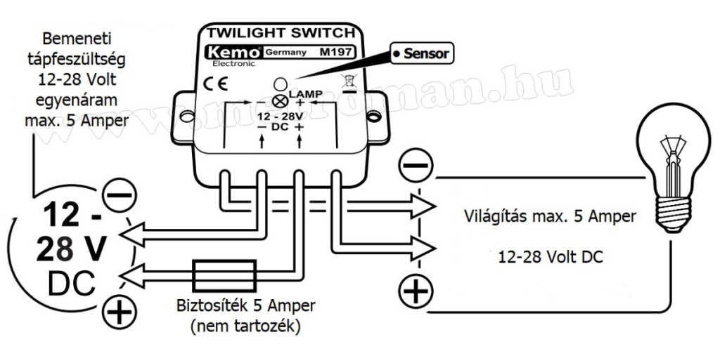 Kemo M197 Sötétedéskapcsoló, Alkonykapcsoló DC 12-28 Volt