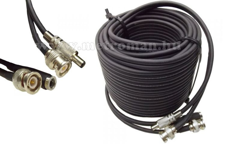 Szerelt koax vezeték megfigyelő kamerához, táp vezetékkel, BNC-DC Kábel 10 m 7598-10
