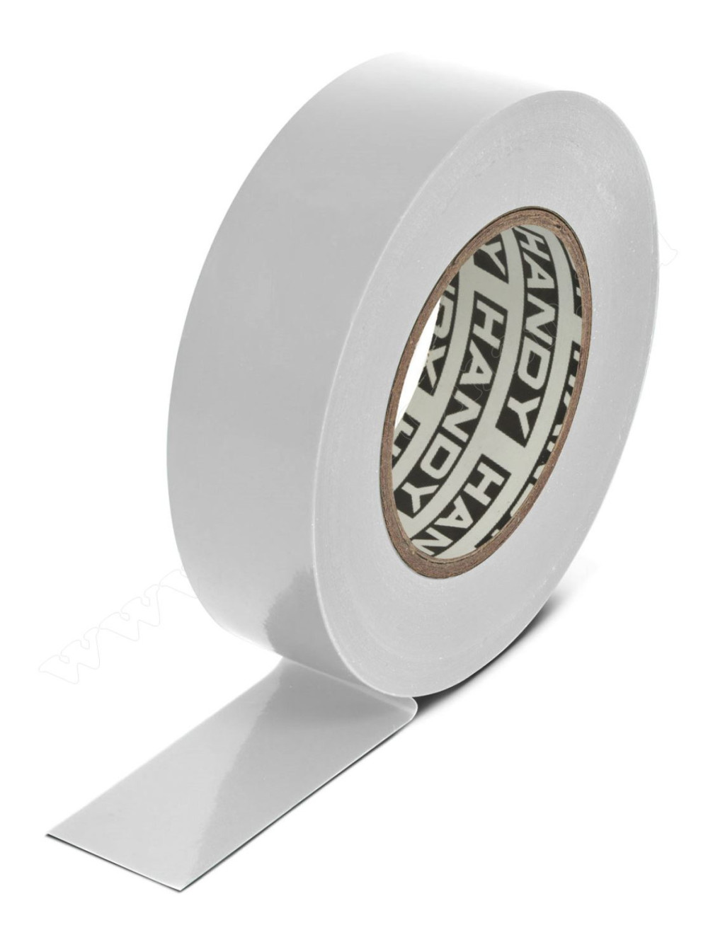 Elektromos vezetékek szigetelésére alkalmas 20 méteres szigetelőszalag fehér színben.