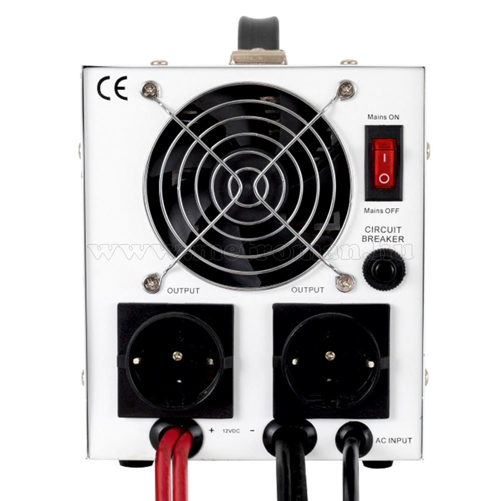 12/230 Voltos feszültség átalakító inverter, feszültség stabilizátor és szünetmentes tápegység valódi szinusz jellel. A 230 Voltos hálózatról tölti az akkumulátort, a hálózati feszültség megszűnésekor pedig automatikusan átkapcsol akkumulátoros üzemre. Kitűnően használható központi fűtésekhez, keringető szivattyúkhoz és számítógépekhez is.