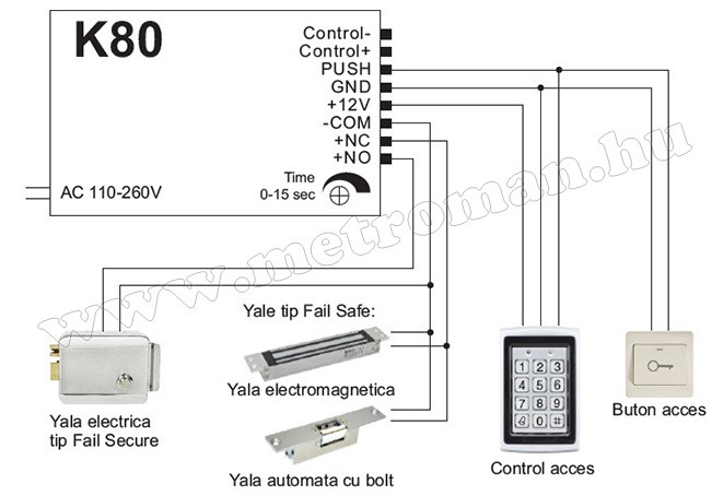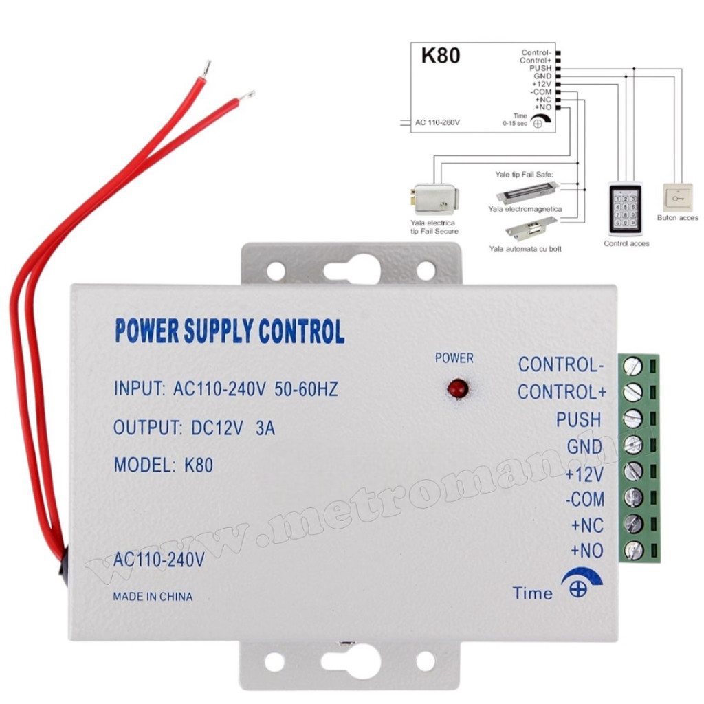 MK80-12V-3A tápegység időzíthető elektromos zár vezérléssel mágneszárakhoz és beléptető rendszerekhez
