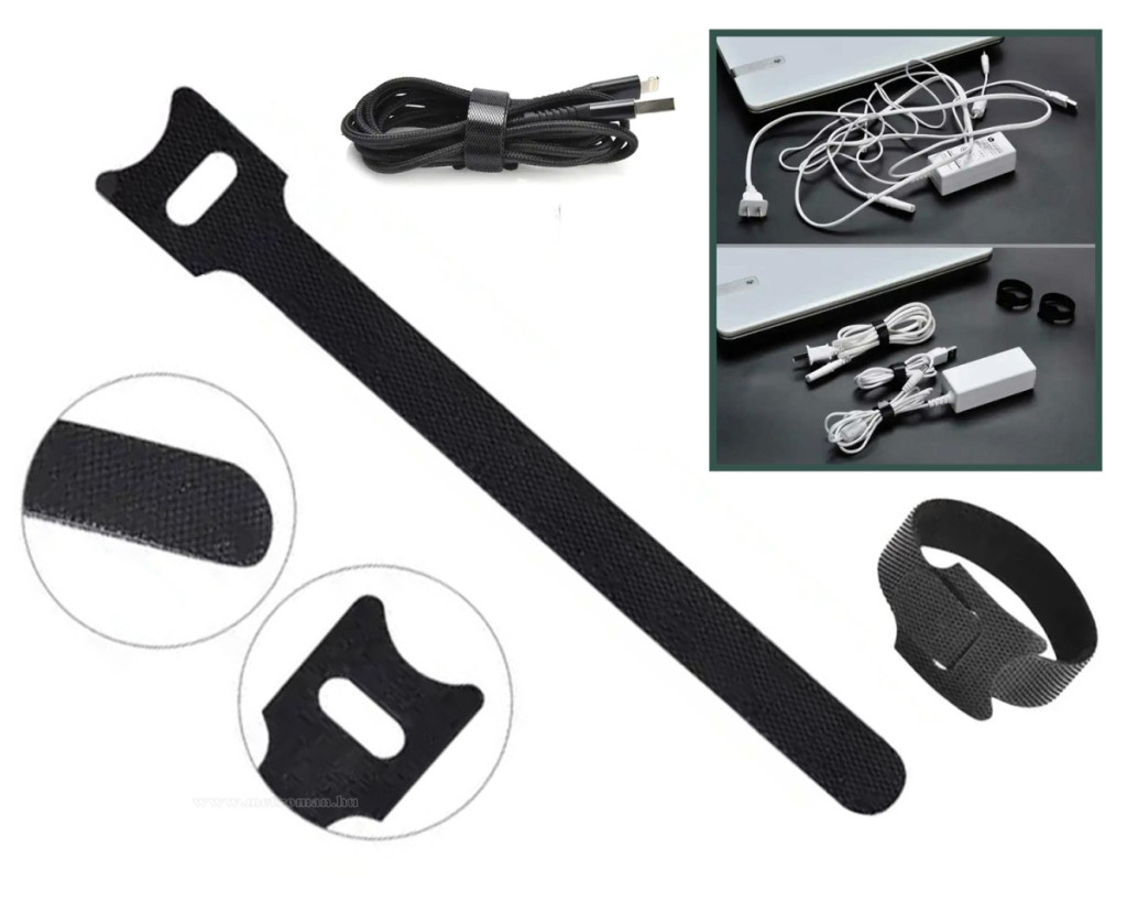 Elektronikus eszközeid kábelei összekuszálódnak, rendezetlenek, balesetveszélyesek? Ezzel az univerzális tépőzáras kábelrendezővel villámgyorsan rendszerezheted az összegabalyodott kábeleket.