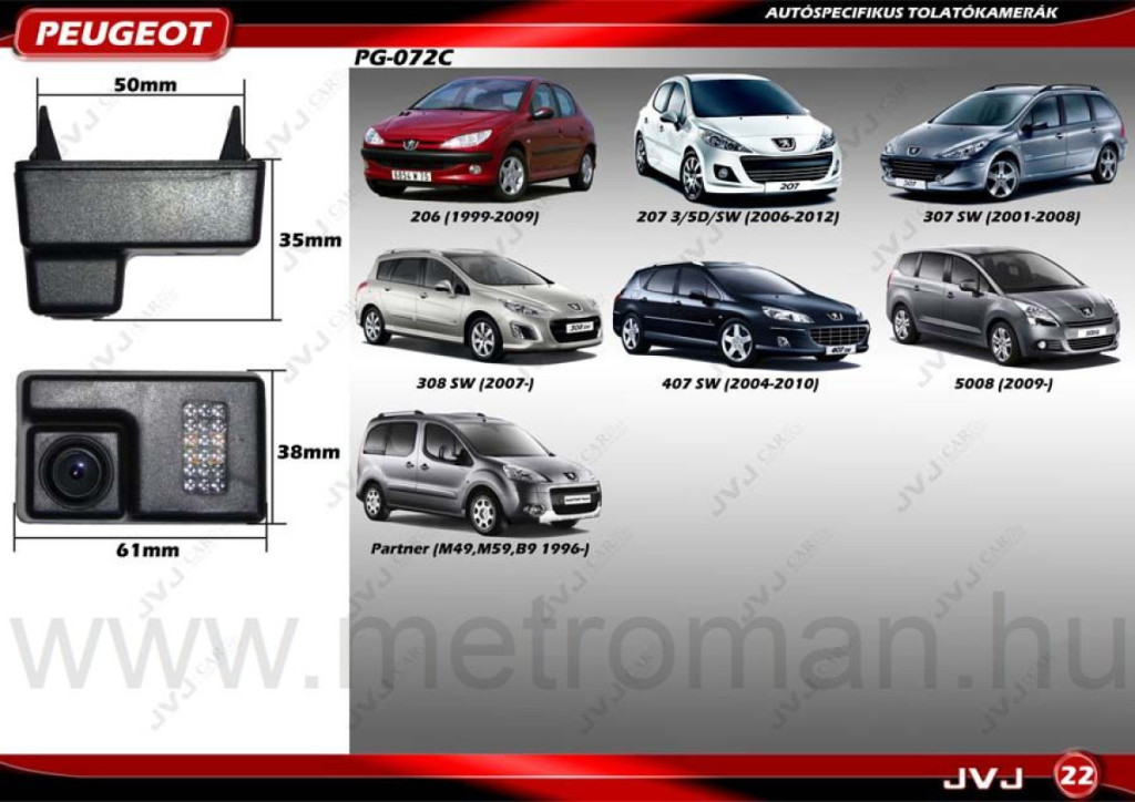 - Peugeot 206, 207, 307, 308, 407 Tolatókamera.