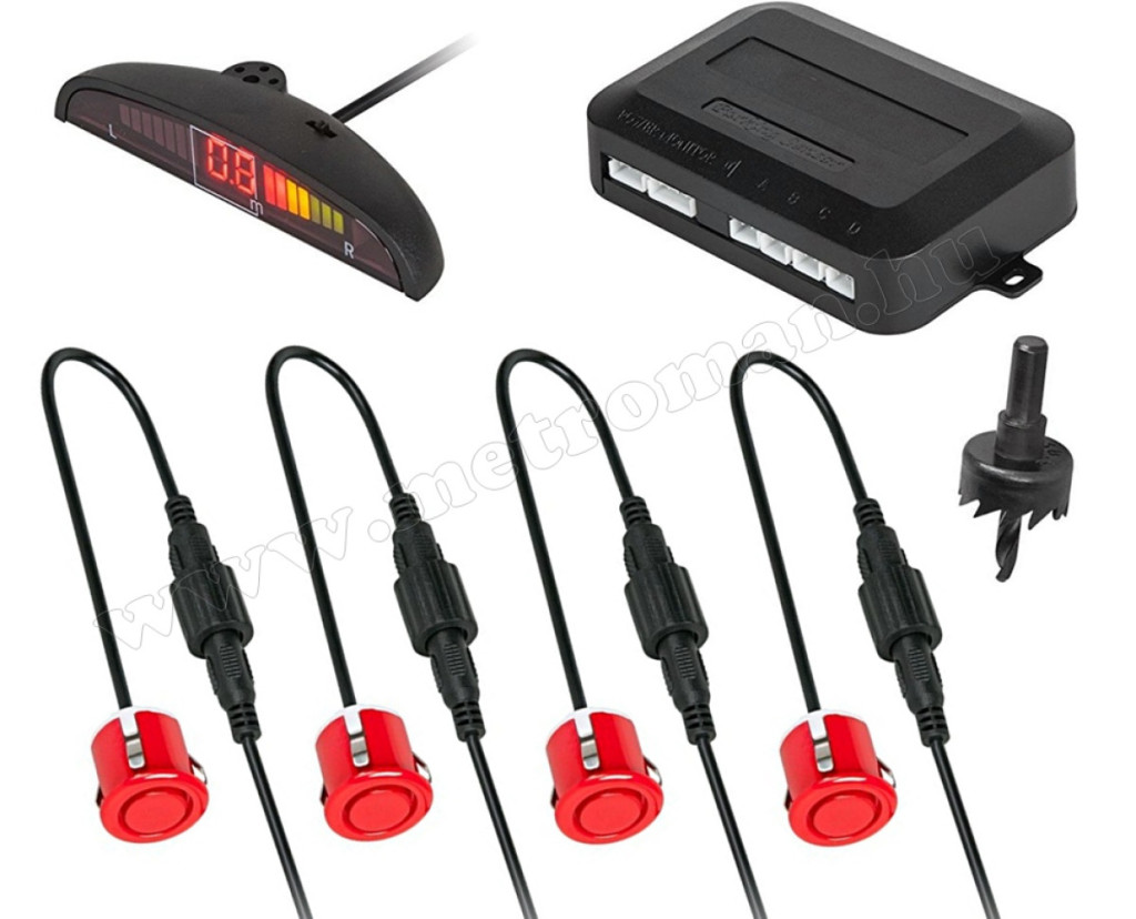 Tolatóradar Extra szenzorral, LED kijelzővel MM-0104R Piros