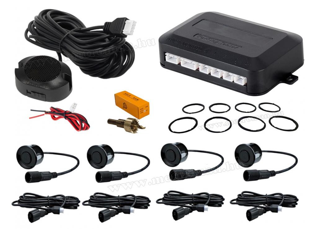 4 szenzoros autós tolatóradar szett, csak hangjelzéssel, fekete színű Érzékelő fejekkel.