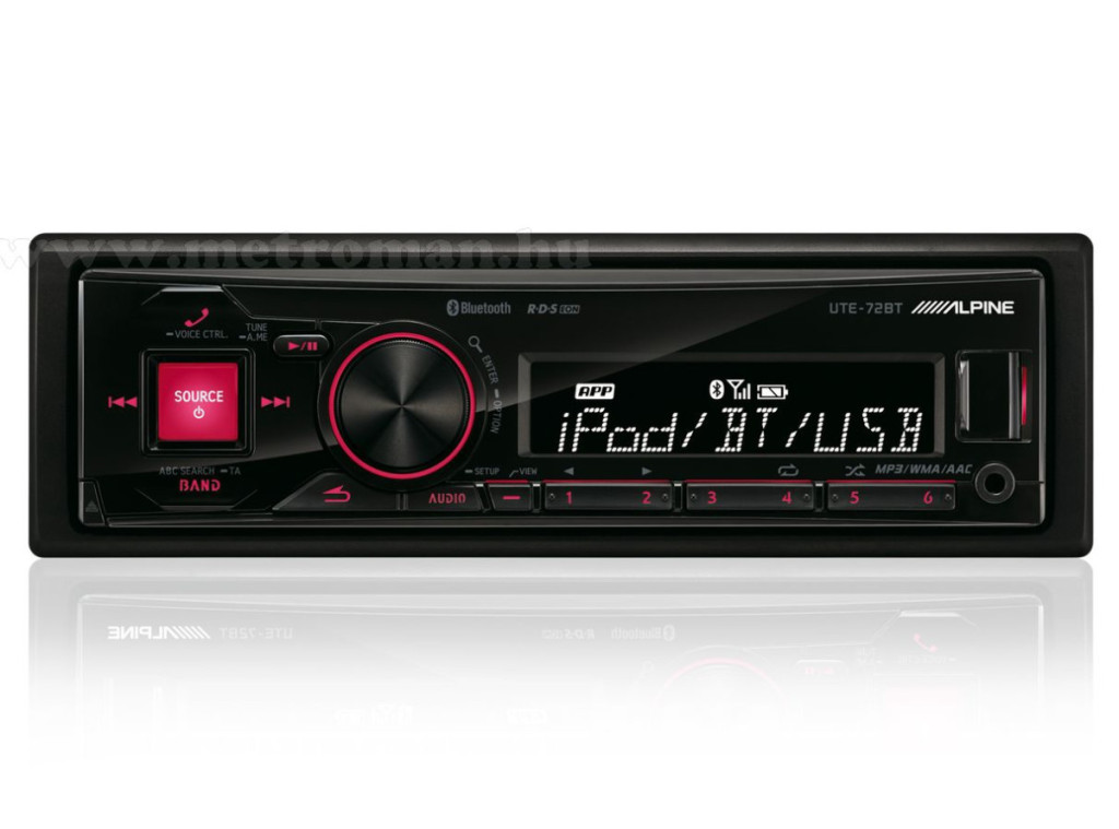 - A megbízható Alpine hangminőség és a kényelem. Ez jellemzi az  UTE-72BT modellt beépített Bluetooth technológiával. Játsszon le iPod ® vagy iPhone ® készülékről USB kábelen (kábel külön megvásárolható)és vezérelje zenéit, használja a keresési funkciókat közvetlenül a fejegységről.