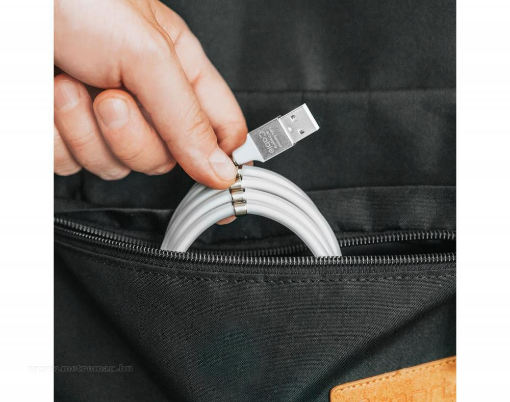 USB - microUSB típusú csatlakozóval szerelt adatátvitelre és készüléktöltésre is alkalmas szilikonkábel. A vezetéken elhelyezkedő 10 db mágnes segíti a rendezett, gubancolódásmentes tárolást.