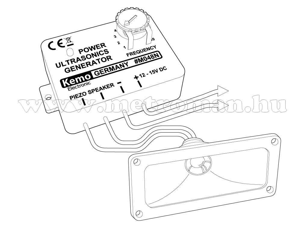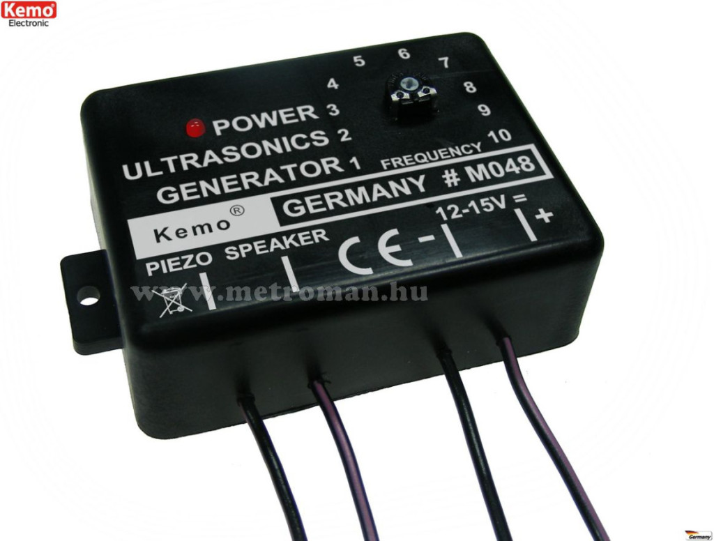 A Kemo M048EX 4 hangszórós ultrahangos szett melynek előnye, hogy a több hangszóróval nagyobb területet és főkét több irányt tudunk levédeni. Frekvenciája széles tartományban állítható, így szinte minden olyan állat riasztására alkalmas, mely érzékeny az ultrahangra, többek közt Nyest, Patkány, Egér, Kutya, Macska, Róka, Vadak és Madarak.