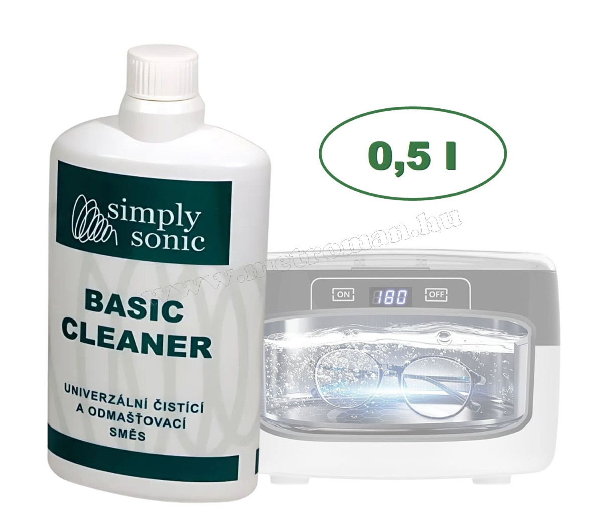 Ultrahangos tisztító folyadék 0,5 literes, melynek segítségével az ultrahangos tisztító készülék hatékonyabban távolítja el a szennyeződéseket a tárgyak felületéről. Ha tárgyakat már hosszú ideje nem tisztották, felületükön makacs foltok, oxidáció találhatók az ultrahangos mosó folyadék felgyorsítja a szennyeződések lebomlását és javítja a tisztítás hatékonyságát.