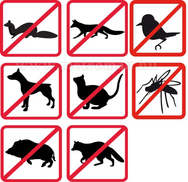 Használható pók, szúnyog, egér, patkány, nyest, róka, kutya, vadak , madarak elriasztására.