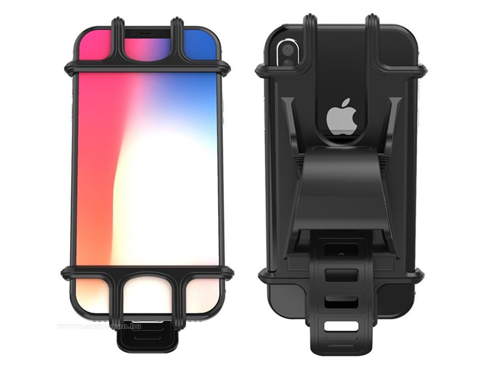 Univerzális kormányra szerelhető 4" - 6,5" telefonokhoz alkalmas ez a könnyen felszerelhető és kezelhető rugalmas telefontartó. A kerékpárkormányhoz rögzítve stabilan tartja a készüléket a tartós szilikonból készült gumiszalagoknak köszönhetően. Alkalmas kerékpárokra, motorokra vagy például babakocsira is. Fekete színben készült.