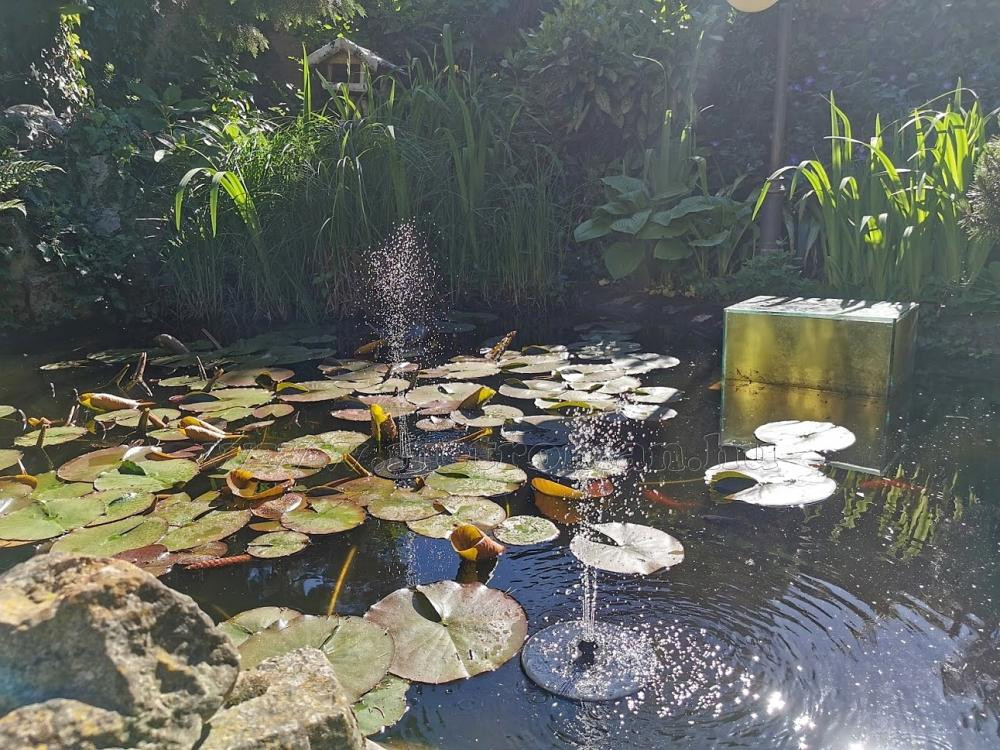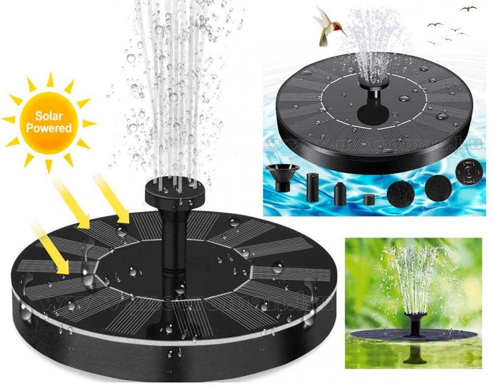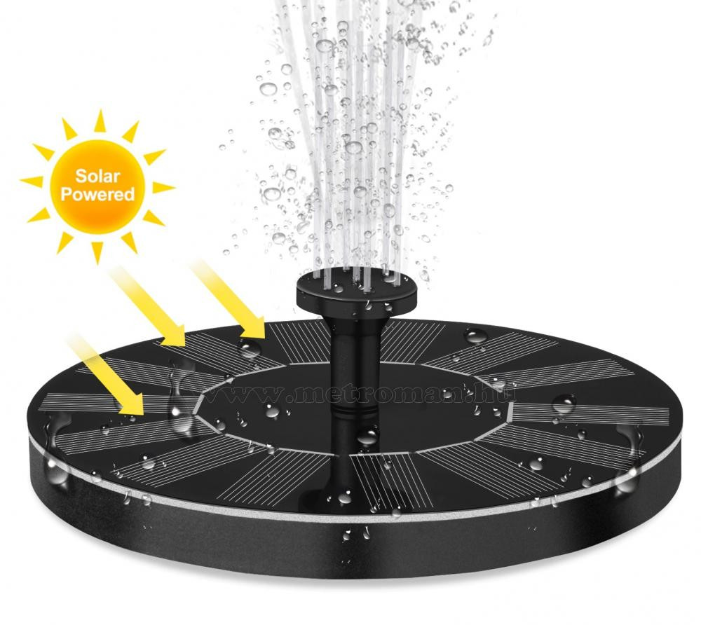 Teremtsen kellemes hangulatot kertjébe, ezzel a kerti tavakba, csobogókba rakható szökőkúttal. A szökőkút energiaellátásáról a Nap gondoskodik a beépített szolár paneleknek köszönhetően. Nincs szükség kábelezésre, akkumulátorokra, hálózati áramra vagy elemek cseréjére. Az eszközre 5 féle szórófej rakható, így garantáltan megtalálja mindenki a számára esztétikusat, megfelelőt. A termék használata egyszerű: Rakja az Önnek megfelelő szórófejet az eszközre, majd helyezze a terméket a víz felszínére. A készülék alján található szivattyú a vizet a szórófejen át a levegőbe juttatja. A vízsugár magassága jelentős méretékben függ a napsütés intenzitásától, illetve a közvetlen napfény mennyiségétől.