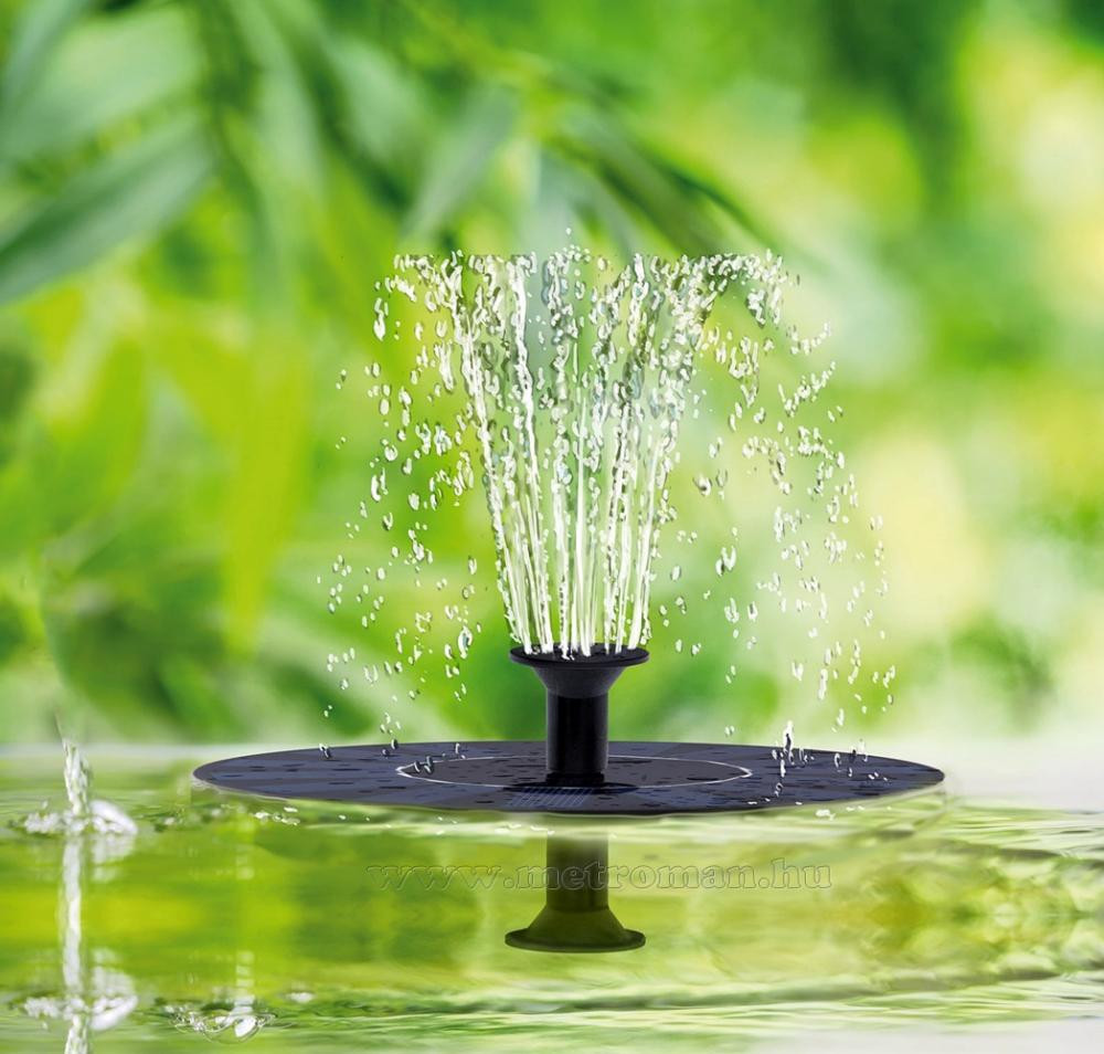 Teremtsen kellemes hangulatot kertjébe, ezzel a kerti tavakba, csobogókba rakható szökőkúttal. A szökőkút energiaellátásáról a Nap gondoskodik a beépített szolár paneleknek köszönhetően. Nincs szükség kábelezésre, akkumulátorokra, hálózati áramra vagy elemek cseréjére. Az eszközre 5 féle szórófej rakható, így garantáltan megtalálja mindenki a számára esztétikusat, megfelelőt. A termék használata egyszerű: Rakja az Önnek megfelelő szórófejet az eszközre, majd helyezze a terméket a víz felszínére. A készülék alján található szivattyú a vizet a szórófejen át a levegőbe juttatja. A vízsugár magassága jelentős méretékben függ a napsütés intenzitásától, illetve a közvetlen napfény mennyiségétől.