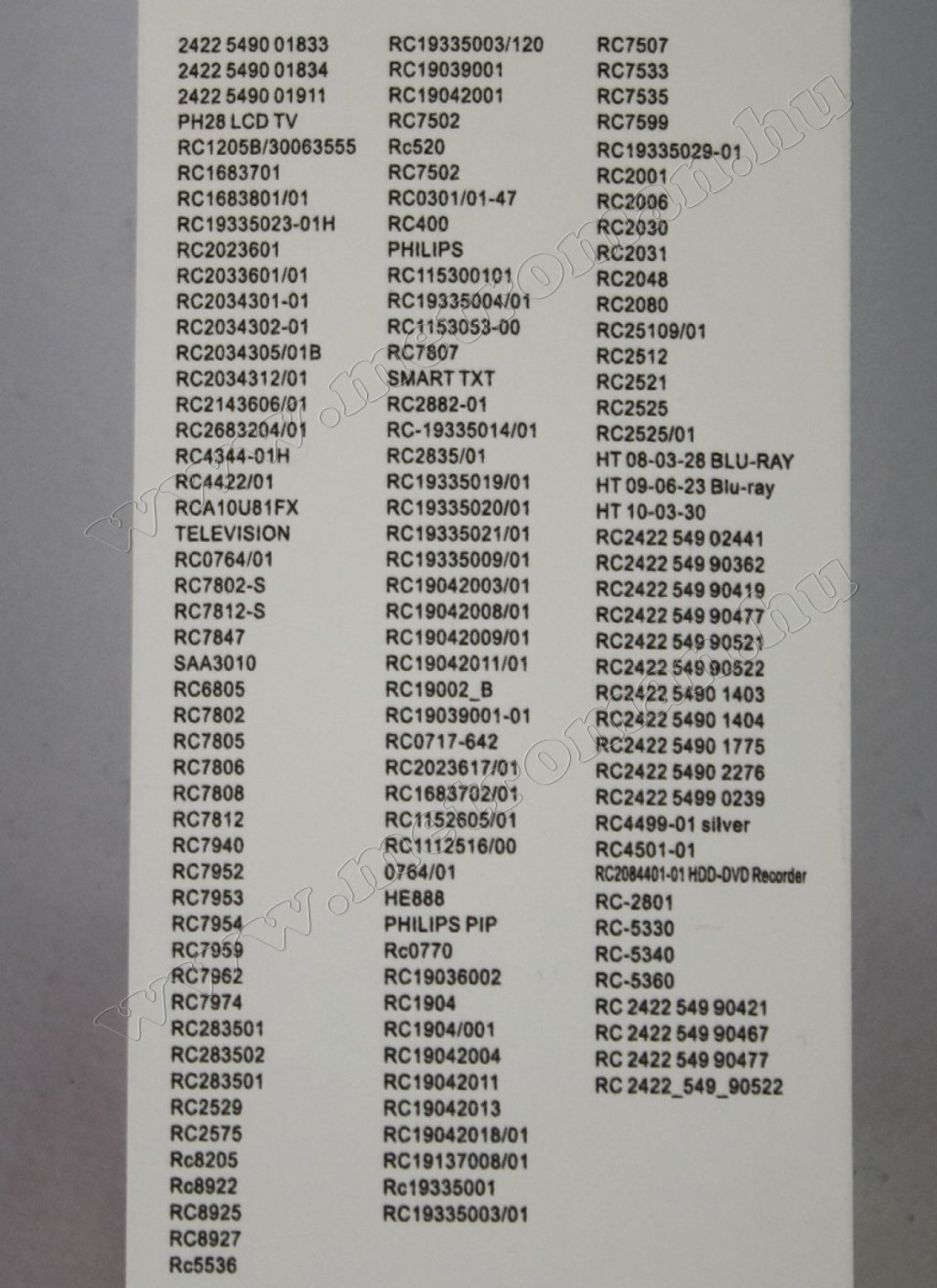 Az alábbi típusszámú Philips LCD TV távirányítók helyettesítésére  használható: