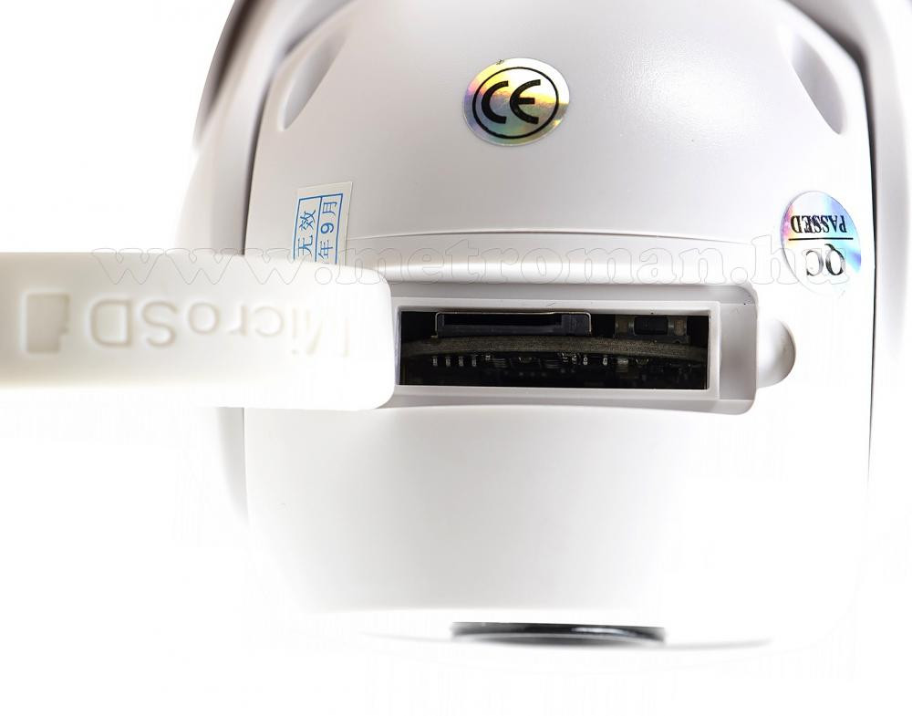 Android vagy iPhone okostelefonról vagy PC-ről nézhető, PTZ forgatható vezeték nélküli Wifi Ip kamera SD kártyás felvétel rögzítéssel.