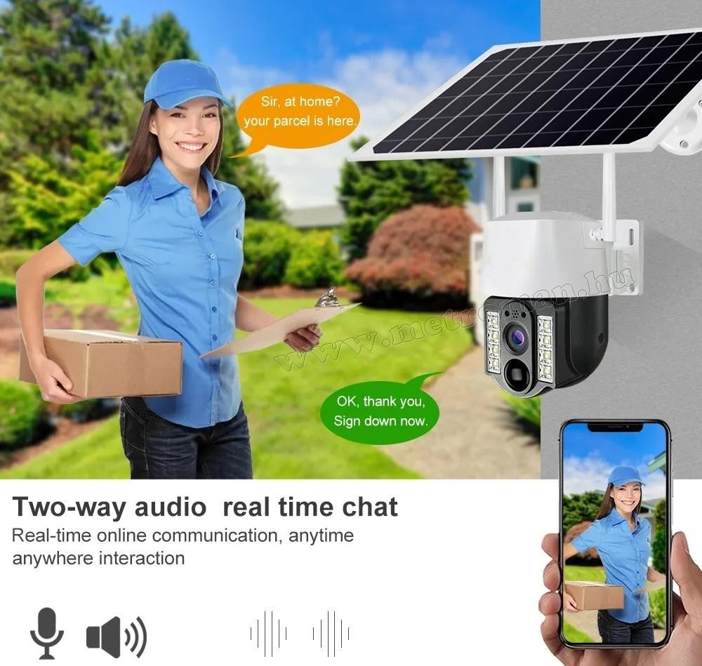 Vezeték nélküli Napelemes Wifi kamera, Android iPhone Wifi kültéri megfigyelő kamera MVC3-2MP-WIFI-PTZ-SOLAR V380PRO