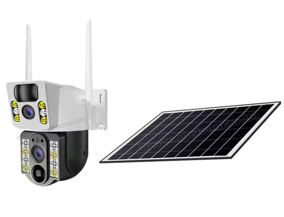 Vezeték nélküli Napelemes Wifi kamera, Android iPhone Wifi kültéri megfigyelő kamera MVCS03-2MP-WIFI-PTZ-SOLAR DUAL-CAM V380PRO